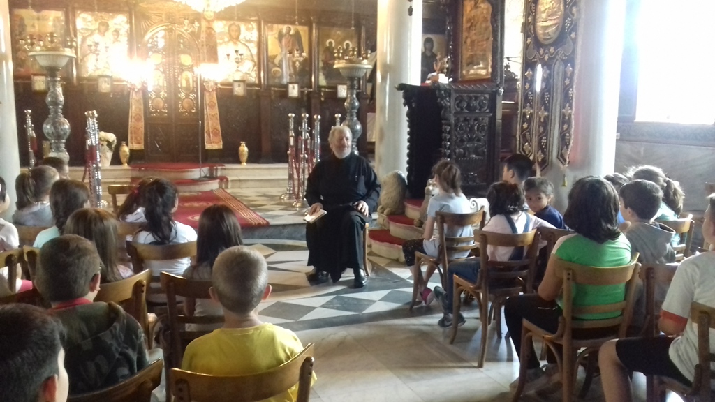 Στο πλαίσιο υλοποίησης του περιβαλλοντικού προγράμματος “Η ελιά”, οι μαθητές των δυο τμημάτων της Β΄ τάξης του σχολείου μας μαζί με τις δασκάλες τους, επισκέφτηκαν, την Παρασκευή 11 Μαΐου 2018, τον Μητροπολιτικό Ναό της Κοιμήσεως της Θεοτόκου και ενημερώθηκαν από τον πατέρα Γεώργιο για την ελιά, το ιερό δέντρο πολλών θρησκειών, από τους χρόνους της ειδωλολατρίας μέχρι τους χρόνους της εμφάνισης των μονοθεϊστικών θρησκειών.